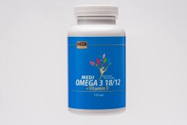 MediOmega3 je doplnok obsahujúci rybí olej v ľahko rozpustných softgélových kapsliach.Omega 3 mastné kyseliny (EPA a DHA) prispievajú k správnej funkcii srdca,mozgovej činnosti a dobrému zraku. Zlepšuje kvalitu pokožky,vlasov a nechtov.Ľudské telo nemá schopnosť ich produkcie,takže je dôležité dopĺňať ich.